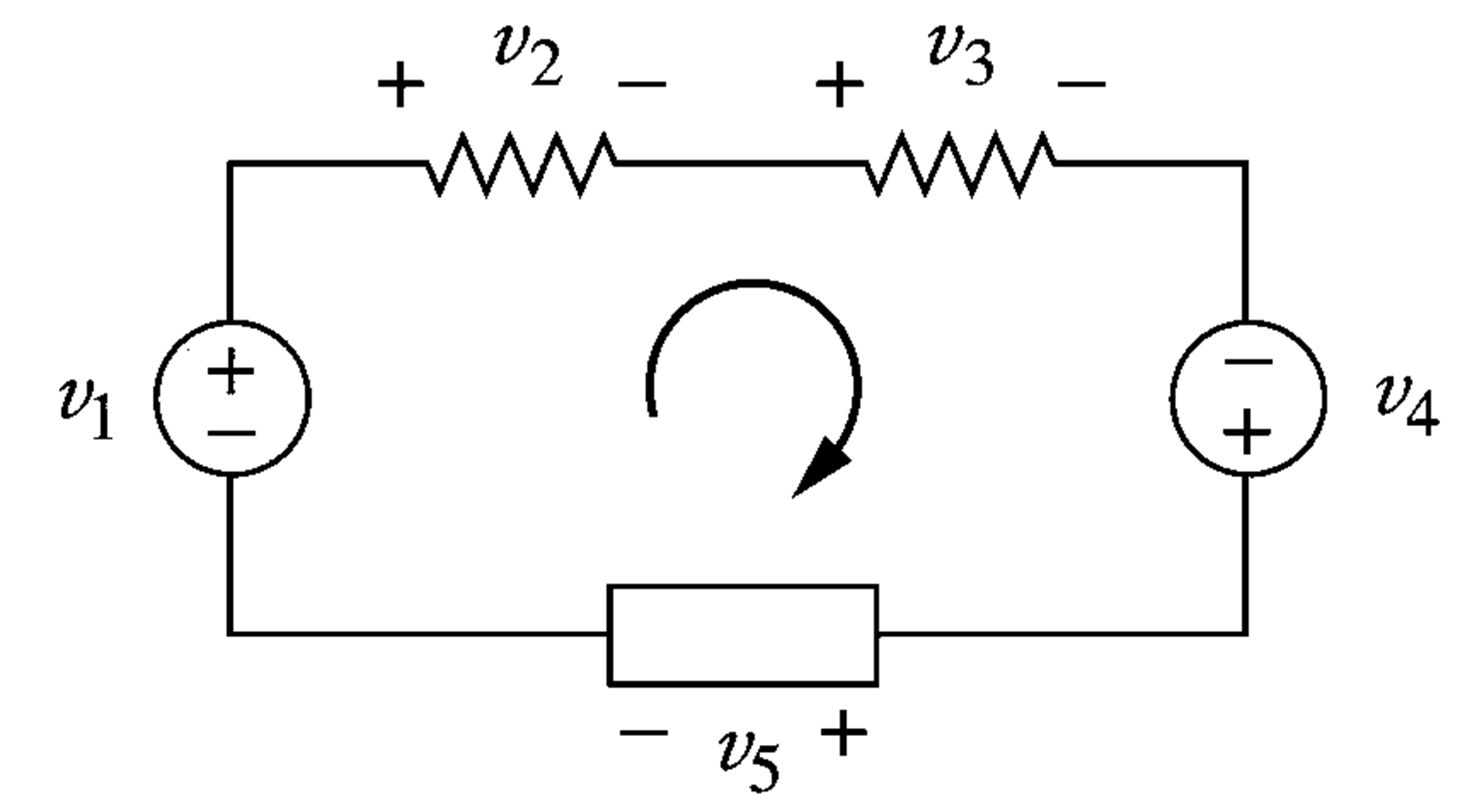 -V1 + V2 + V3 – V4 + V5 = 0